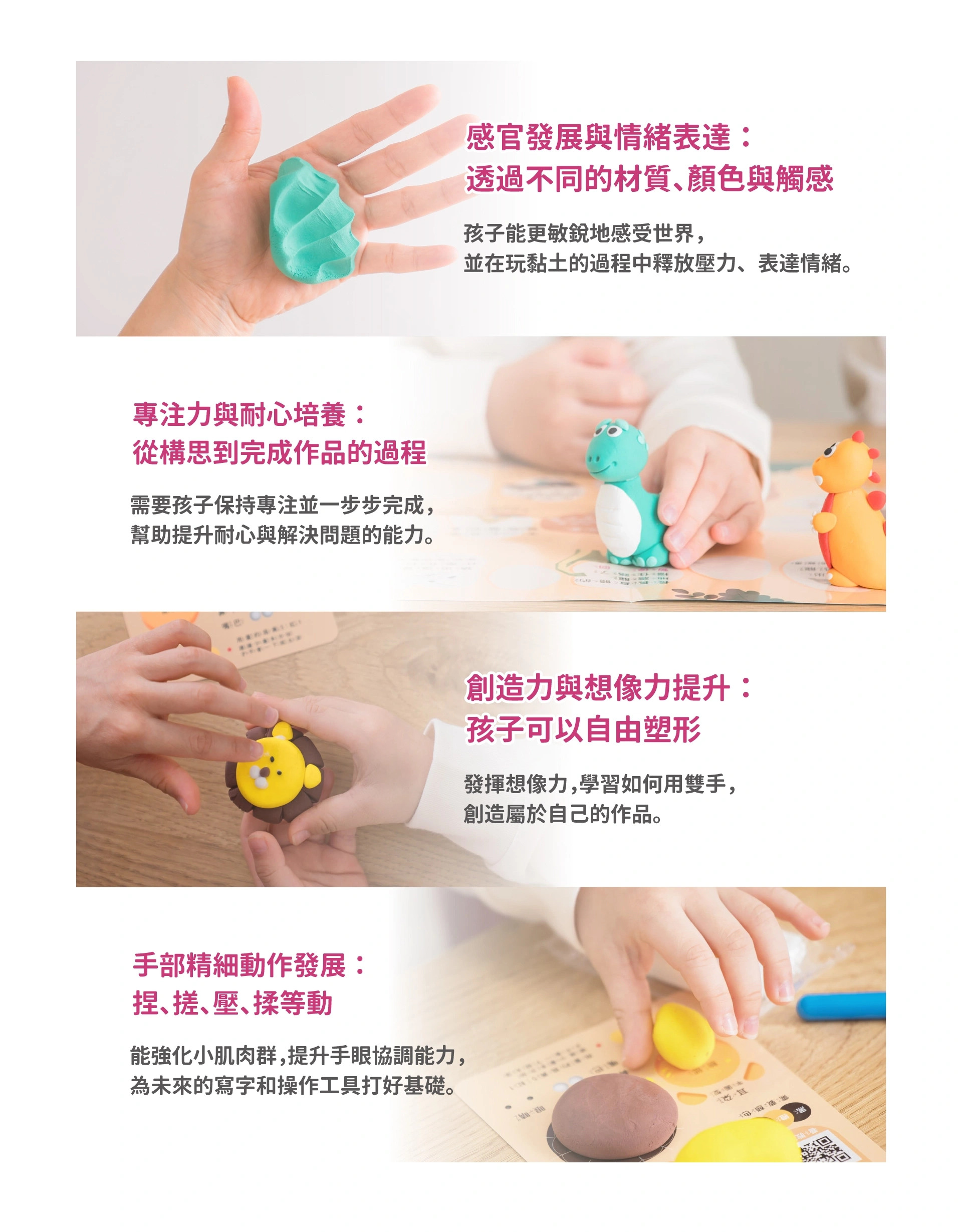 透過黏土創作或遊戲,孩子能同步發展以下能力: